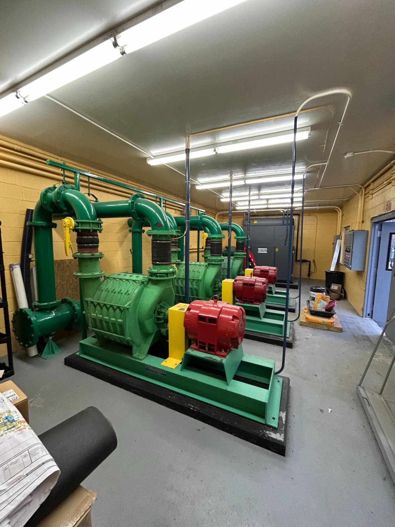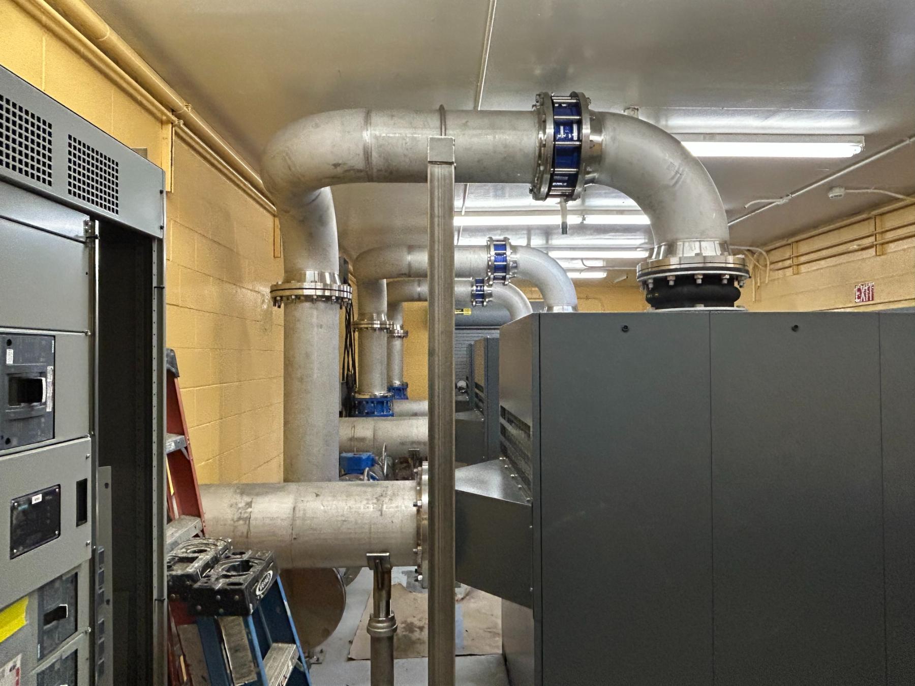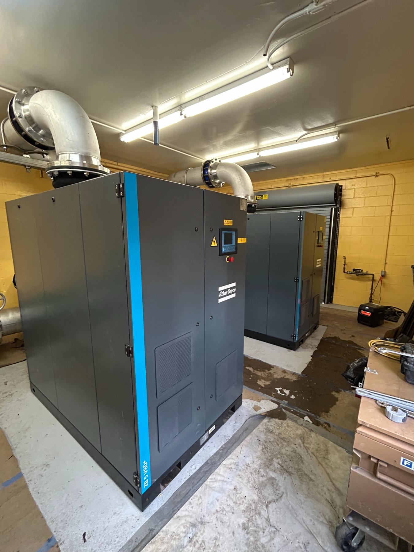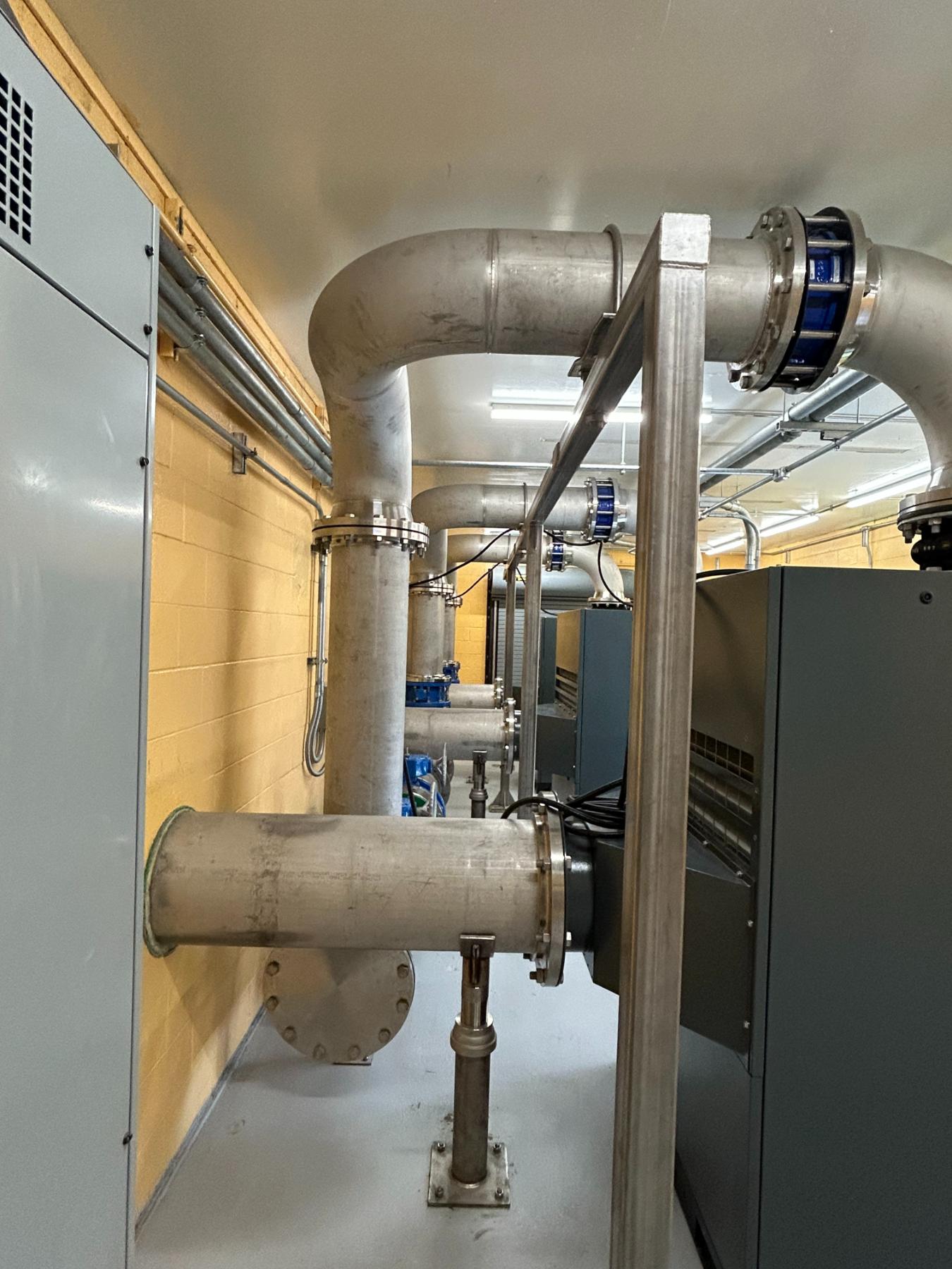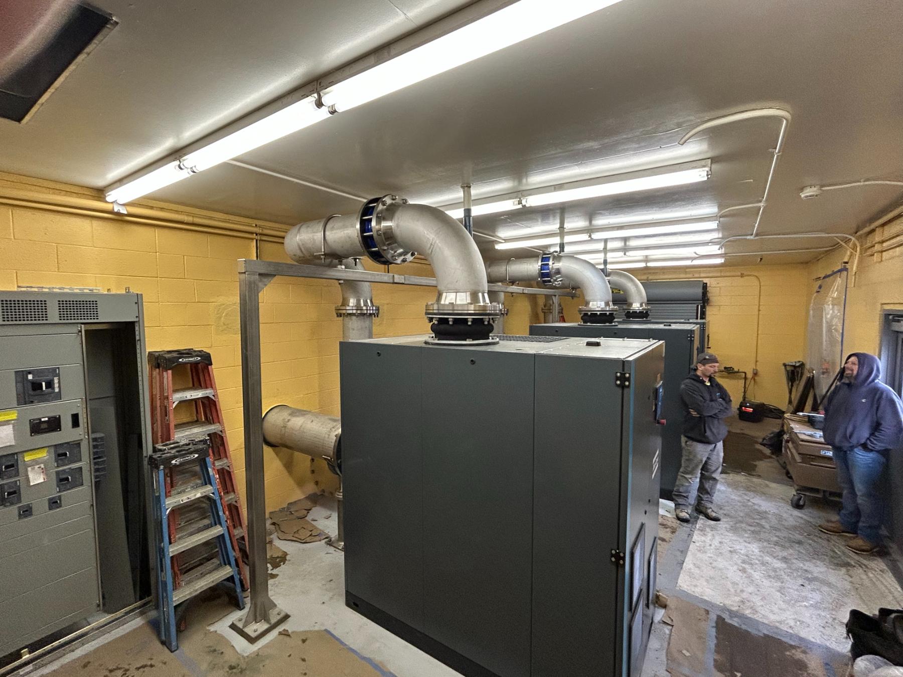 Provide and install (3) new Atlas Copco Turbo Blowers including new stainless steel distribution piping, isolation valves, stainless pipe supports, temporary blower system and miscellaneous building improvements. Flach Industries was able to detail and fabricate all piping and accessories ahead of placing the plant on temporary air supply to limit down time and expedite the project completion.
